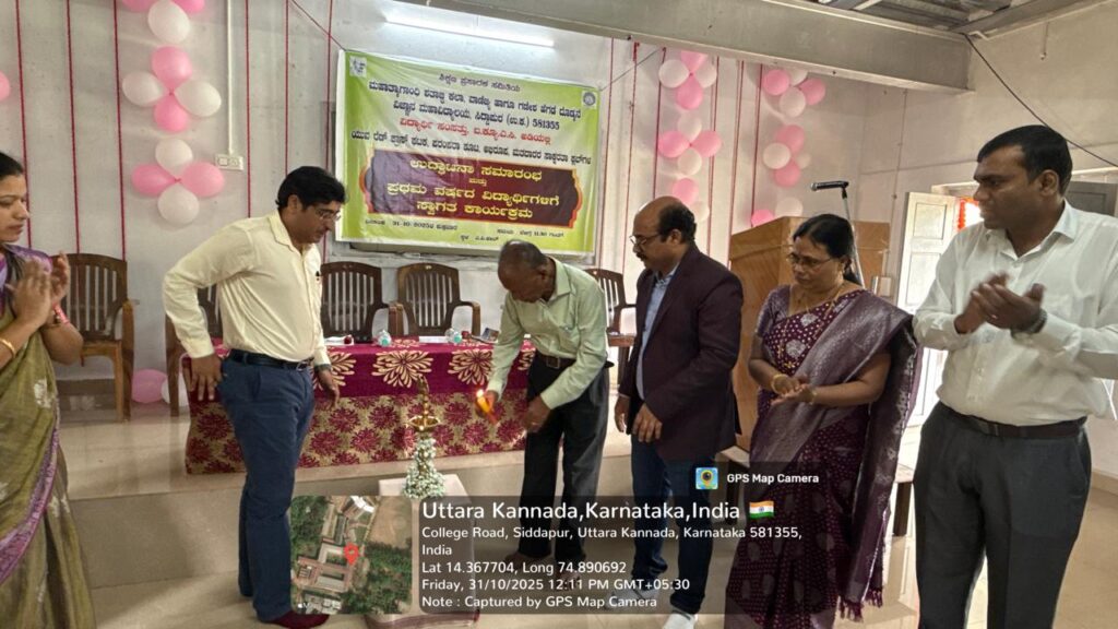 Dignitaries offering floral tributes to the portrait of Sri Ganesh Hegde Dodmane on the stage Dr. Shashibhushan Hegde, President of Shikshan Prasaraka Samiti, giving the introductory speech The inaugurator, Sri Vinay Kulakarni, Assistant General Manager, BBD Department, Head Office, Karnataka Read more